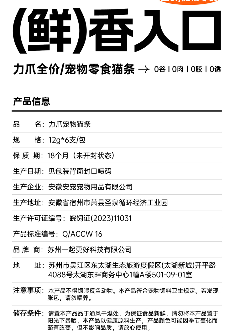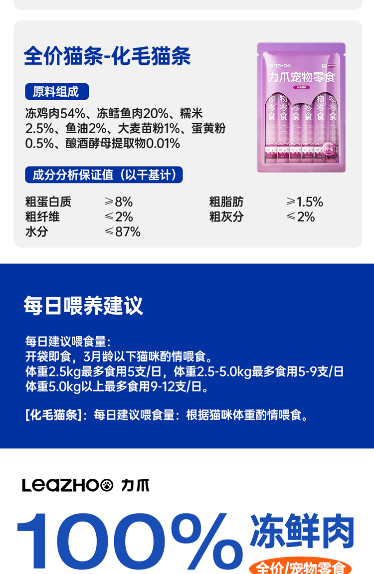 LEAZOO力爪猫零食猫条猫咪成猫幼猫专用猫条主食无添加剂乌骨鸡味